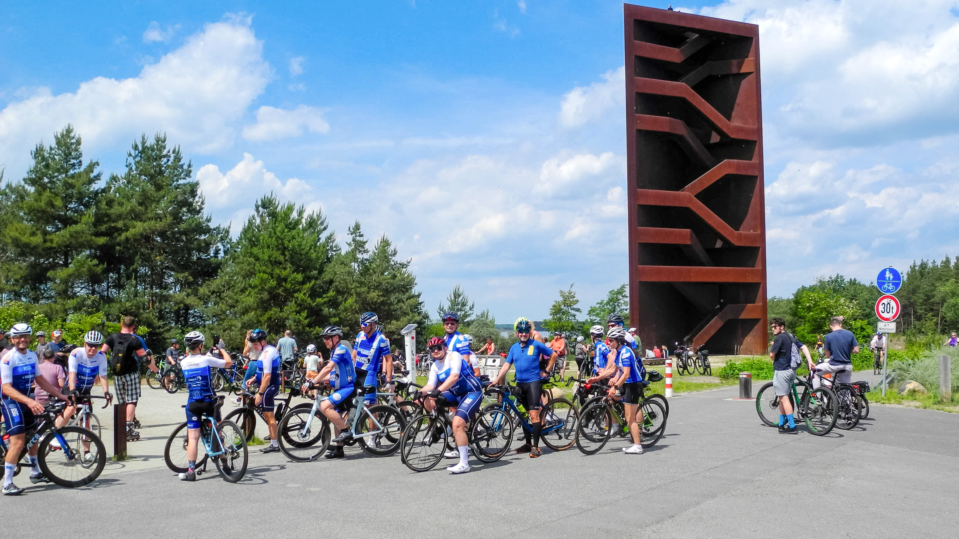 18 RSGler starteten am Donnerstag in Pirna zu ihrer Osttour. Das erste Highlight war das Tal der Elbe und die Felsen des Elbsandsteingebirges und die Burg Königstein. In Bad Schandau verließ die Gruppe das Elbtal, um von Sebnitz bis Ebersbach die Tschechei zu passieren. In Schönbach wartete dann, nach 75 km, das erste Quartier in der „Kulturfabrik“. Ausgeruht begann der zweite Tag. Über welliges Terrain, führte der Weg hinunter ins Tal der Neiße, mit einem kurzen Stopp am Berzdorfer See. Ab Ludwigsdorf folgte die Gruppe dem Neißeradweg mit einem Kurzstopp bei Zentendorf, am östlichsten Punkt Deutschlands. Weiter entlang der Neiße, durch Rothenburg, Lodenau und weiteren kleinen Städtchen, überquerten sie die Neiße, um nach 120 Km in Leknica/Polen, das zweite Quartier zu beziehen. Bei herrlichem Wetter war die Strecke am dritten Tag geprägt von Seen, die aus ehemaligen Braunkohlegruben entstanden sind und von teilweiße unangenehmen Kopfsteinpflaster-Straßen. Den Abschluss von Tag drei bildete das majestätische Schloss Moritzburg, in dessen Nähe, nach 125 km das letzte Quartier bezogen wurde. Der Höhepunkt des letzten Tages war eine Besichtigung von Dresden, bevor es auf dem Elbe-Radweg wieder zum Ausgangspunkt in Pirna zurück ging.