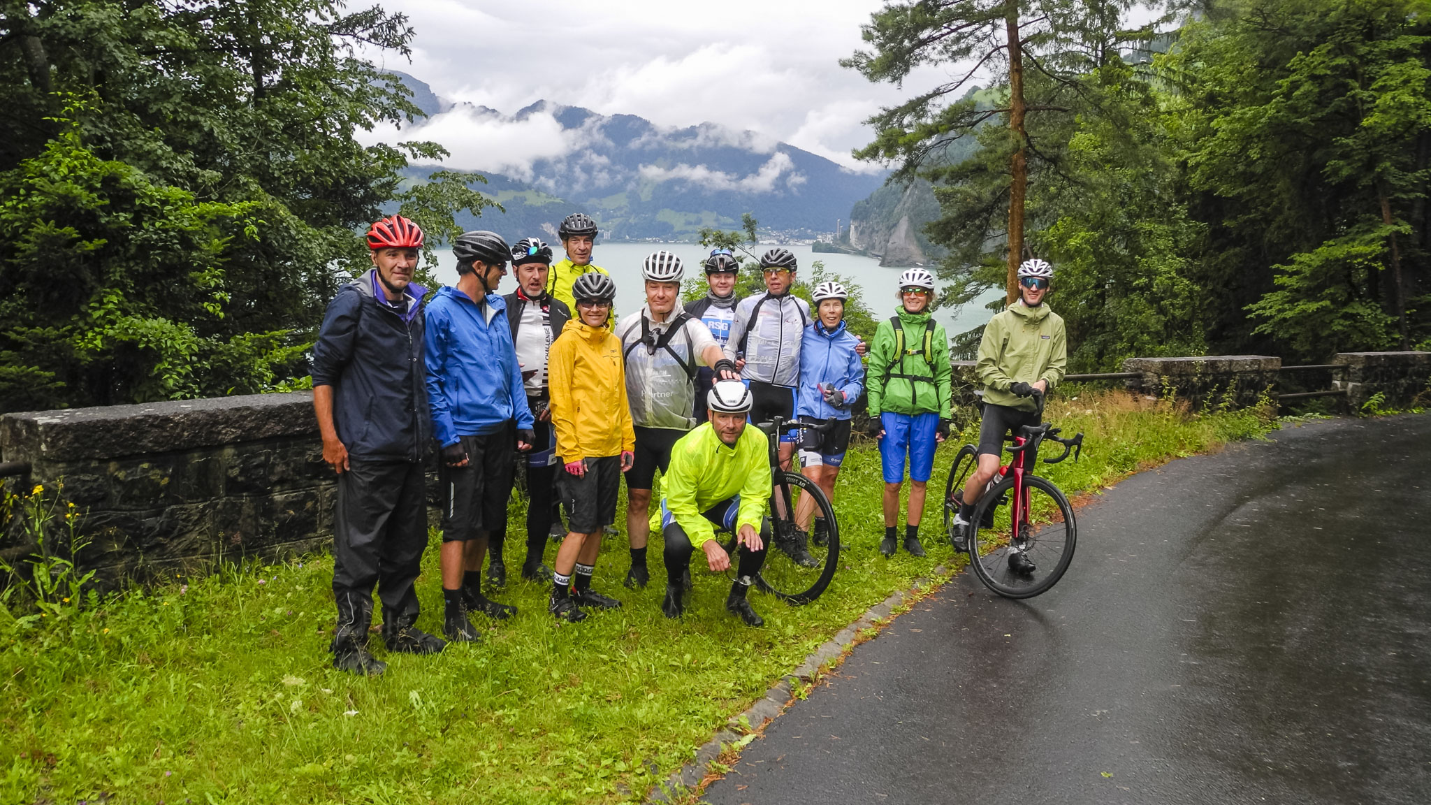 Der dritte Tag begann, zum Glück ohne Regen, gleich mit einem Anstieg, auf der Sustenstrasse direkt vor der Haustüre. Nach ca. 5 km bog unsere Route nach links ab, auf eine schmale Straße die nur eine Richtung, nach oben, kannte. Auf ca. 1200 Hm lag eine kleine Alm, wo wir kurz durchschnaufen konnten, um dann noch weiter aufzusteigen. Nach einer weiteren Pause, mit herrlichen Ausblick ins Tal, folgte eine Abfahrt hinunter nach Hasliberg. Hier wartete wieder unser Bus zum Verpflegungsstopp und danach auch der letzte Anstieg, zum Brünigpass. Die letzten ca. 50 Km waren dann nur noch Erholung. Zuerst die Abfahrt vom Brünigpass und das letzte Stück bis zum Ausgangspunkt Luzern nur noch über flaches Gelände. Alles in allem kamen so ca. 330 Km und 5800 Hm zusammen. Wenn dann noch das Wetter mitgespielt hätte…