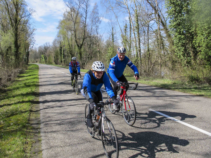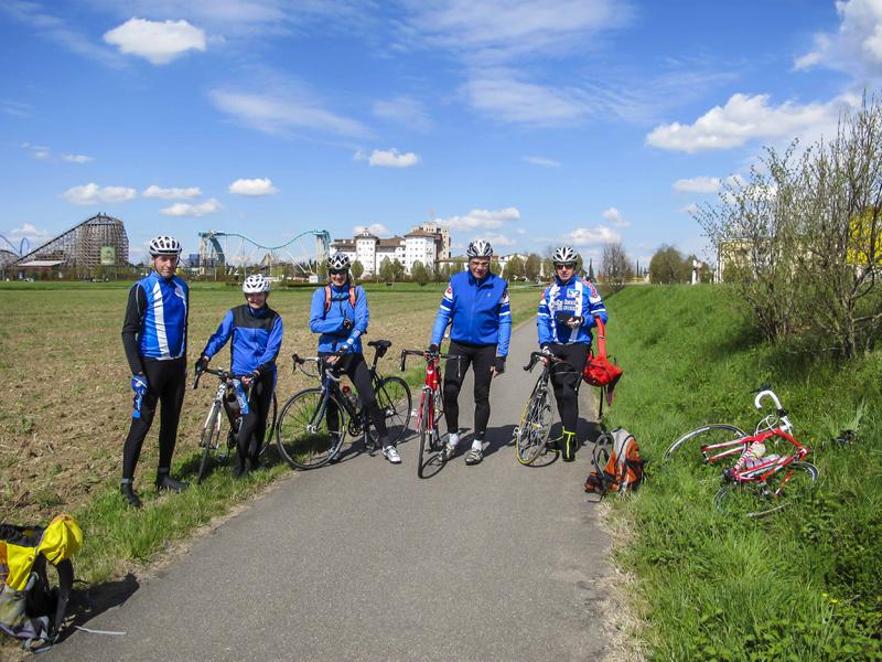 Gleich am folgenden Morgen nach dem Frühstück packten sie ihre Räder aus dem Bus und fuhren bei noch sehr frischen Temperaturen in Richtung französische Grenze, um bei Sasbach über den Rhein ins Nachbarland überzusetzen. Dort angekommen, ging es ca. 45 km dem Flusslauf folgend auf einer schnurgeraden, wenig befahrenen Straße in Richtung Norden. In der Höhe von Lahr gings dann wieder zurück nach Deutschland. Nach einer kurzen Kaffeepause in Rust sind wir gegen 17:00 Uhr wieder in unserer Pension in Endingen angekommen.