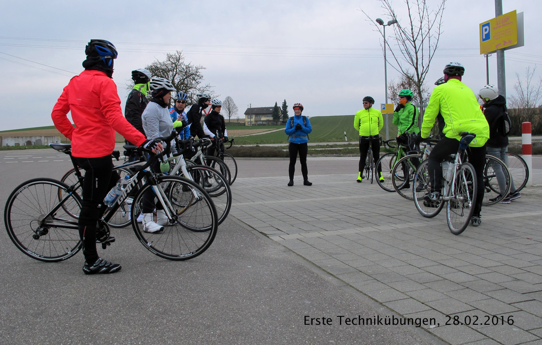 Heute steht Techniktraining und Radbeherrschung auf dem Trainingsplan, das wir dann auf einem Parkplatz in Biberach in die Tat umsetzen.