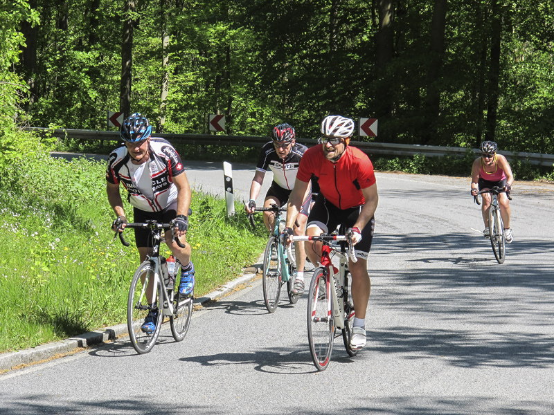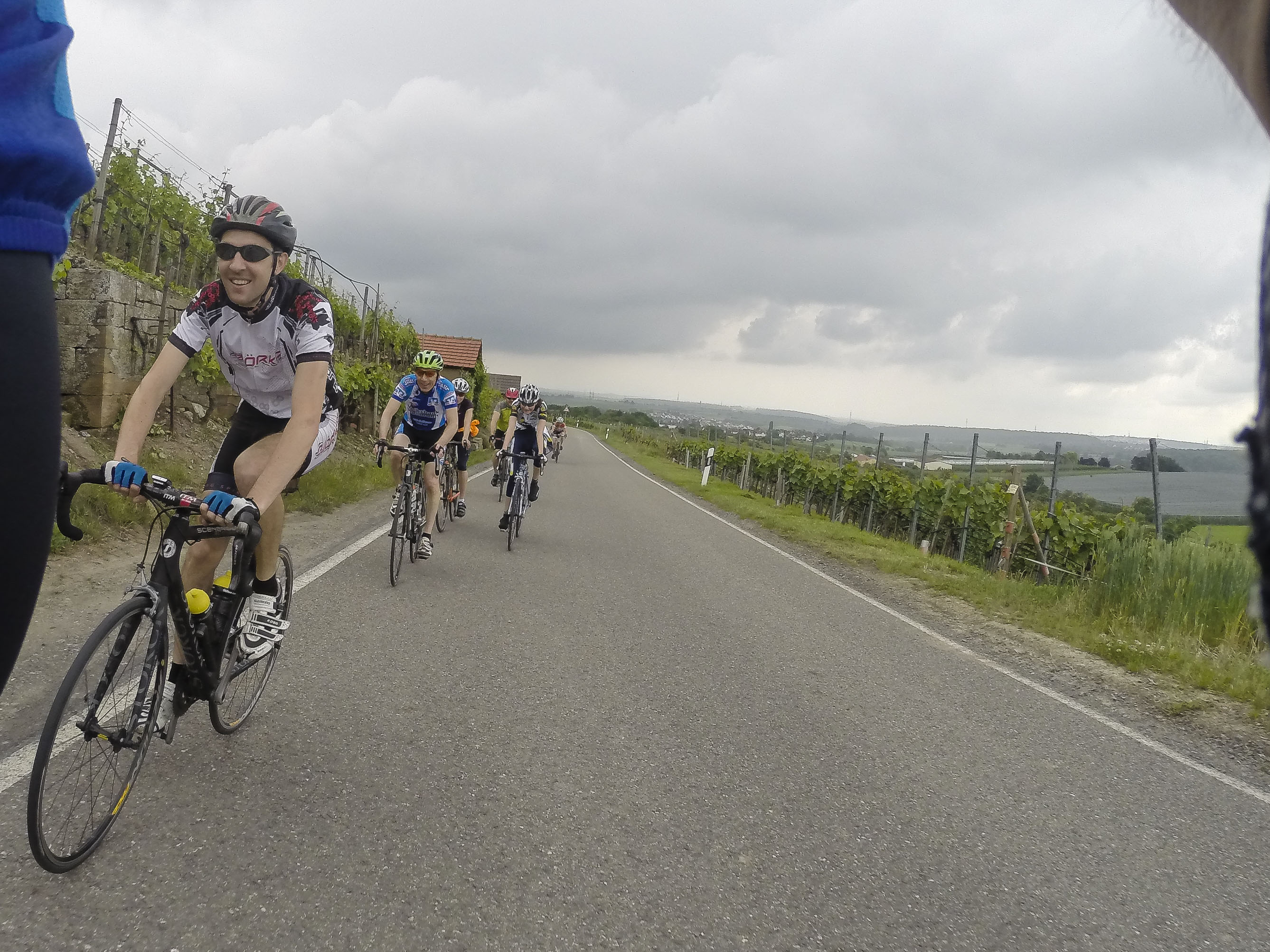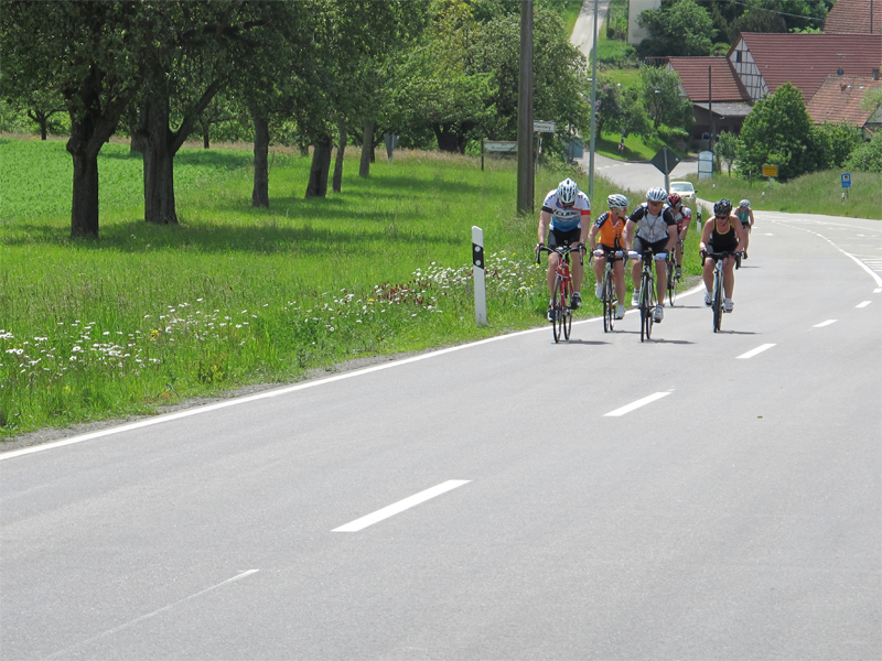 Heute stand wieder Bergtraining auf dem Plan. Wir fuhren über Neckarwestheim, Kirchheim nach Freudental. Der Plan war, die Runde über Häfnerhaslach nach Sternenfels auszudehnen. Dann kam aber der Regen mit Gewittern dazwischen. So entschlossen wir uns in Ochsenbach über Eibensbach, Güglingen und Brackenheim abzukürzen. In Frauenzimmern hat uns dann der Regen mit voller Macht erwischt. Wir konnten aber in der dortigen WG unterstehen, bis das Schlimmste vorüber war. Alles in Allem war es aber eine geglückte Runde uns alle waren zufrieden, dass es bei den schlechten Verhältnissen keinen Sturz gab.